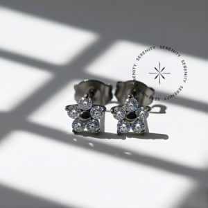 TN1158 Par de Brincos Flor Titânio ASTM F-136