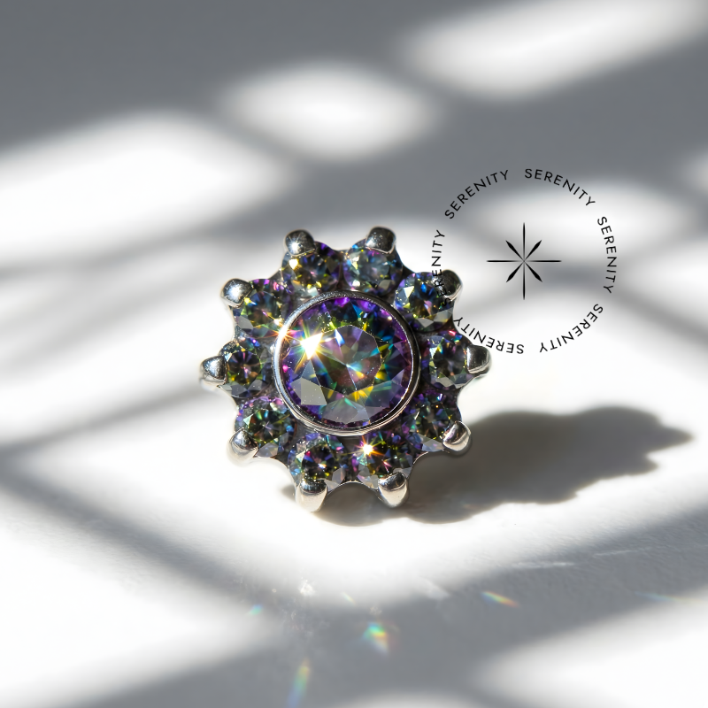 TN425 Piercing Topo Flor Vitrail Medium Titânio ASTM F136