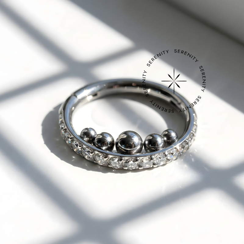 Descrição: Ideal para cartilagem, lóbulo, helix,tragus, aba nasal, septo, daith, entre outros piercings, oferecendo um ajuste confortável e seguro. É uma joia cheia de estilo.