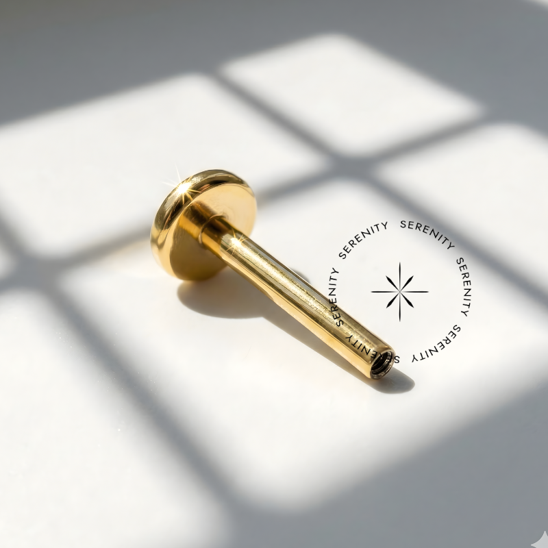 Descrição: A haste de labret push pin projetada para piercings labiais e auriculares, proporcionando um encaixe seguro e confortável. Sua construção permite a troca dos topos sem precisar retirar a joia da perfuração, facilitando a personalização e a manutenção da higiene. A rosca interna minimiza o risco de irritação na pele durante a cicatrização.