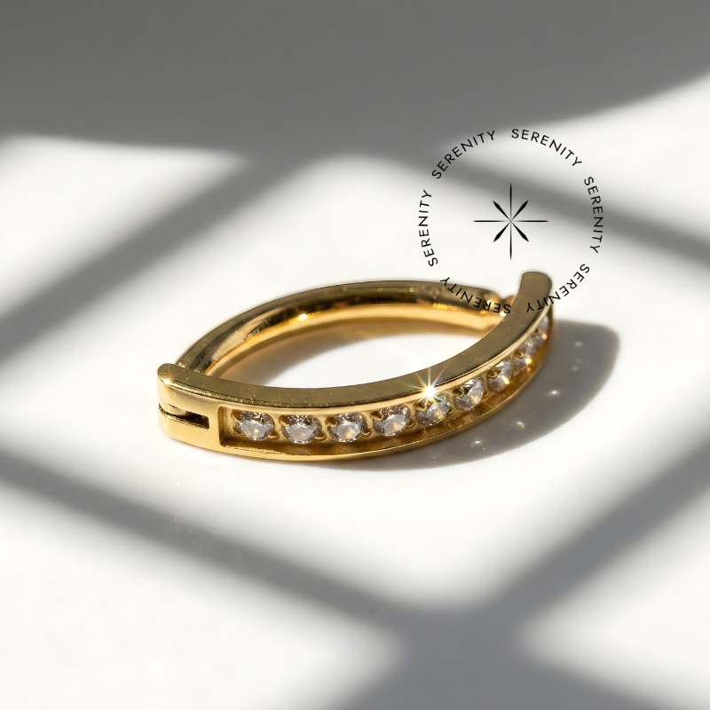 Titânio PVD Gold: É um material altamente durável e leve, que passa por um processo de deposição a vapor (PVD) para receber uma camada de ouro. Esse tratamento não só confere uma aparência luxuosa e brilhante, mas também aumenta a resistência à corrosão e ao desgaste. O titânio é conhecido por ser hipoalergênico, tornando-o uma excelente escolha para joias e piercings, especialmente para pessoas com pele sensível. A combinação de titânio com o acabamento PVD Gold oferece uma opção elegante e resistente, ideal para uso diário.