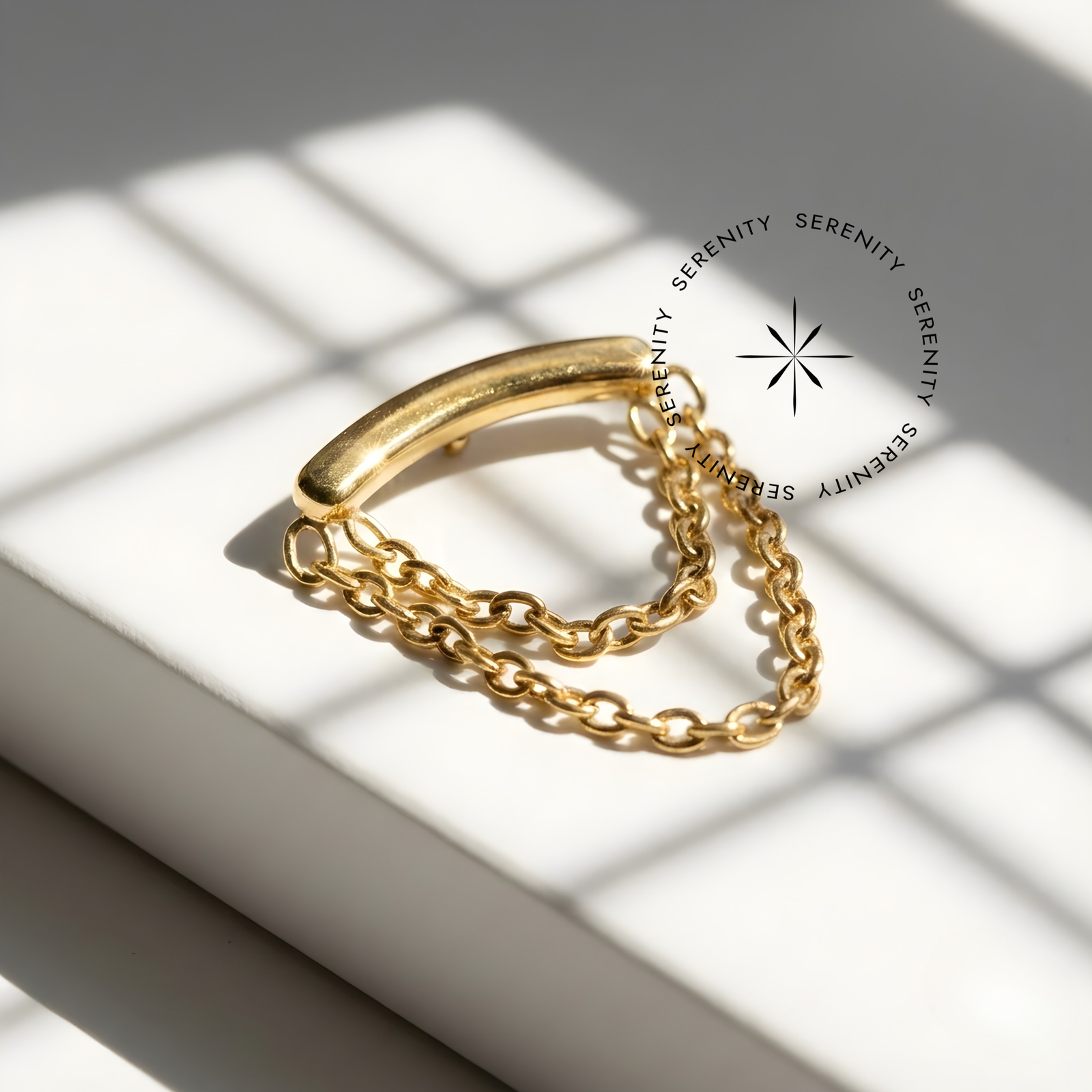 A elegância minimalista de um arco liso e a fluidez de correntes duplas em uma joia de movimento espetacular para o seu Projeto Auricular.