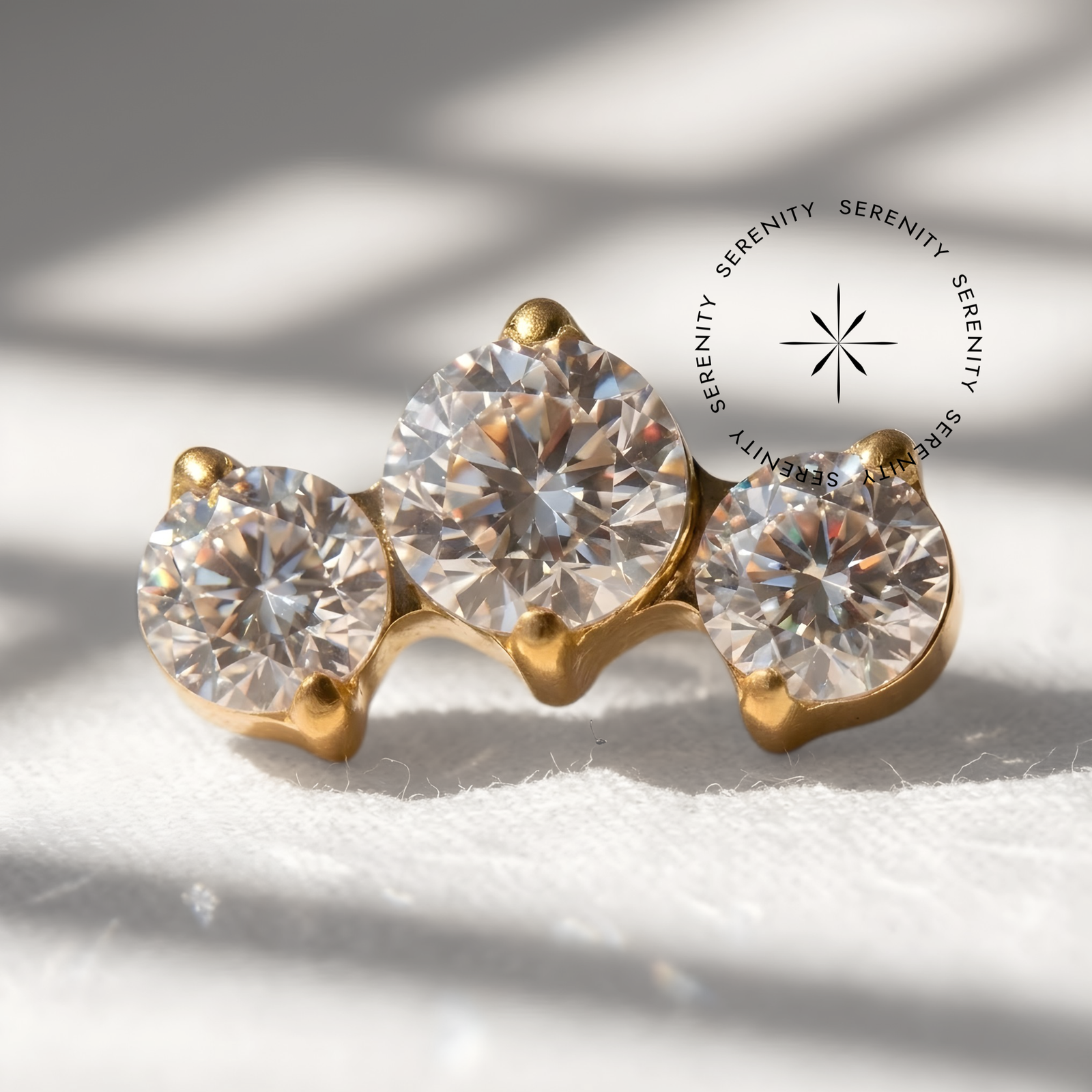 Piercing Topo Cluster 3 Zircônia Titânio e Ouro 18k