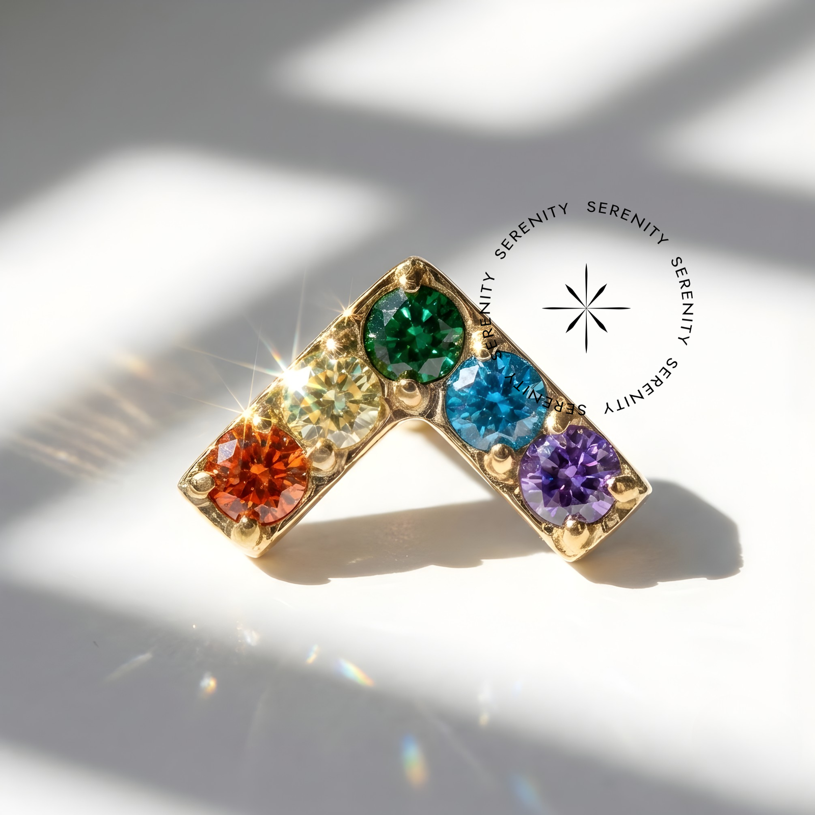 Piercing Topo em “V” Cravejado Titânio e Ouro 18k