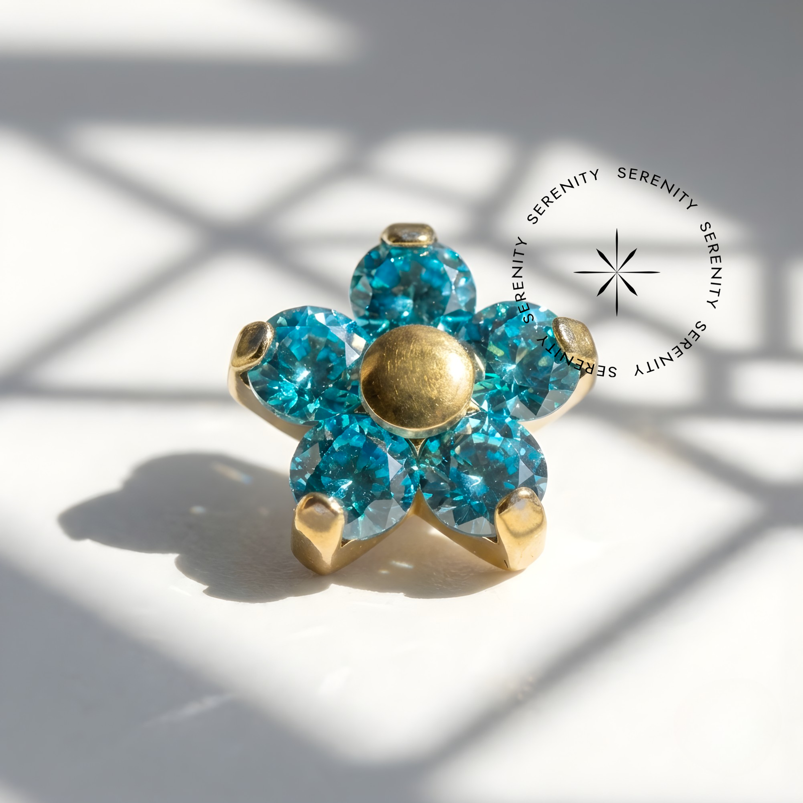 Sugestão de Uso: Com o seu diâmetro de 5.5 mm, esta flor é extremamente versátil. No Conch ou Flat, funciona como um ponto focal de elegância clássica. No Helix ou no Tragus, o seu formato arredondado adapta-se perfeitamente à anatomia da cartilagem. Aplicada no Lóbulo, oferece um visual de joalheria fina que combina harmoniosamente com argolas de zircônias ou micro joias minimalistas.