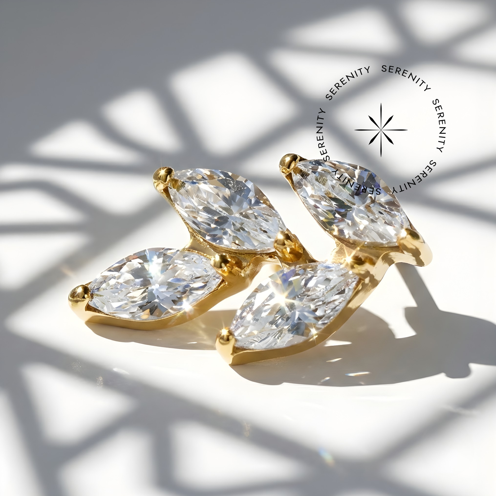• Lapidação Navete Premium: O corte marquise das gemas proporciona uma refração de luz linear e pontiaguda, conferindo um aspecto mais refinado e “afiado” ao brilho da joia.