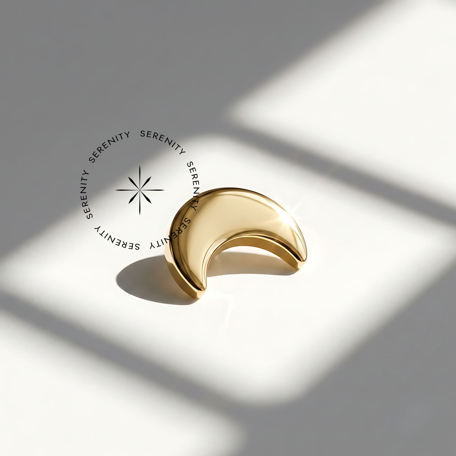 A energia mística da noite e o brilho luxuoso do ouro esculpido em uma joia minimalista para iluminar o seu Projeto Auricular.