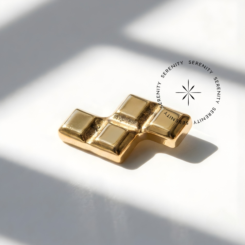 Geometria Dinâmica (Anti-enrosco): O design liso em formato de blocos não possui garras ou pontas afiadas, tornando a joia incrivelmente confortável e segura para o uso diário, sem perigo de enroscar no cabelo.