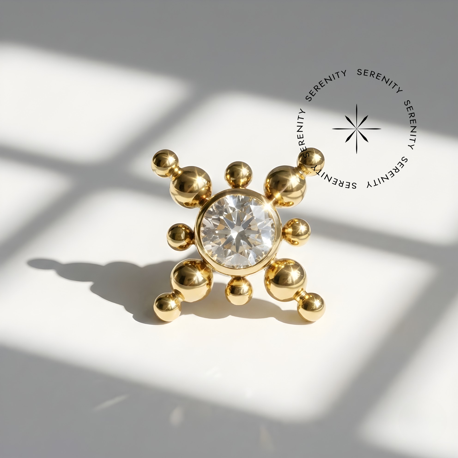 Sugestão de Uso: Com seus 5.8 mm, este topo é extremamente versátil e estratégico. No Flat ou no centro do Conch, ele funciona como um ponto de luz de grande presença. No Helix, sua simetria preenche o espaço de forma magistral. Aplicado no Lóbulo, oferece um visual de “brinco fixo” sofisticado que harmoniza perfeitamente com argolas lisas ou cravejadas em projetos de curadoria em camadas.