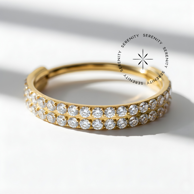 Descrição: Ideal para cartilagem, lóbulo, helix,tragus, entre outros piercings, oferecendo um ajuste confortável e seguro. É uma joia cheia de estilo.