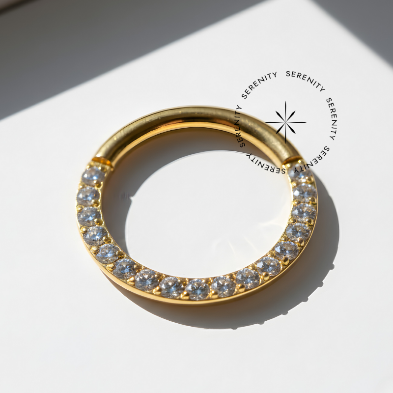Descrição: Ideal para septo,daith, cartilagem, lóbulo, helix, entre outros piercings, oferecendo um ajuste confortável e seguro. É uma joia cheia de estilo.