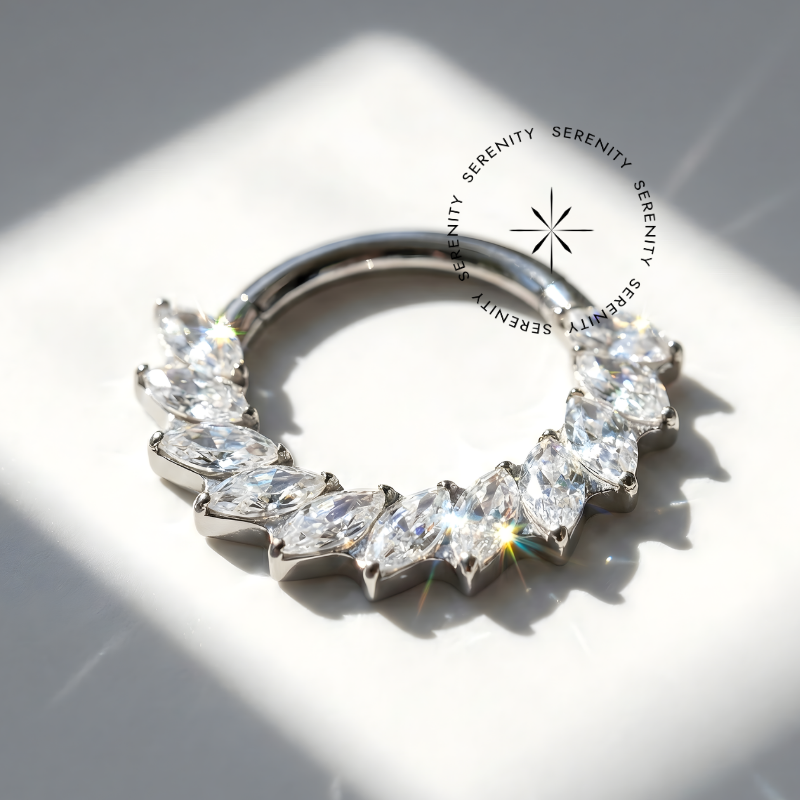 Descrição: Ideal para cartilagem, septo, daith, entre outros piercings, oferecendo um ajuste confortável e seguro. É uma joia cheia de estilo.