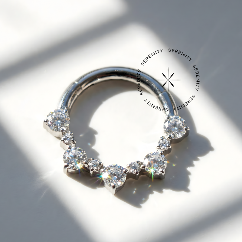 Descrição: Ideal para cartilagem, septo, daith, entre outros piercings, oferecendo um ajuste confortável e seguro. É uma joia cheia de estilo.