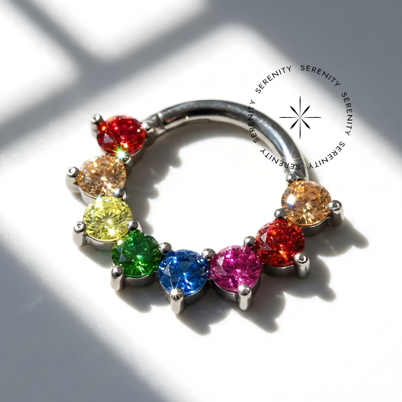 Descrição: Ideal para cartilagem, daith,septo e outros piercings, oferecendo um ajuste confortável e seguro. É uma joia cheia de estilo