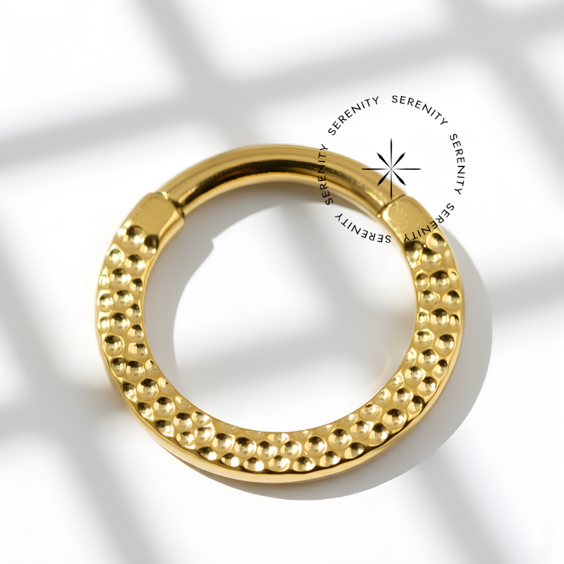 Descrição: Ideal para septo, daith, cartilagem, lóbulo, helix, entre outros piercings, oferecendo um ajuste confortável e seguro. É uma joia cheia de estilo.