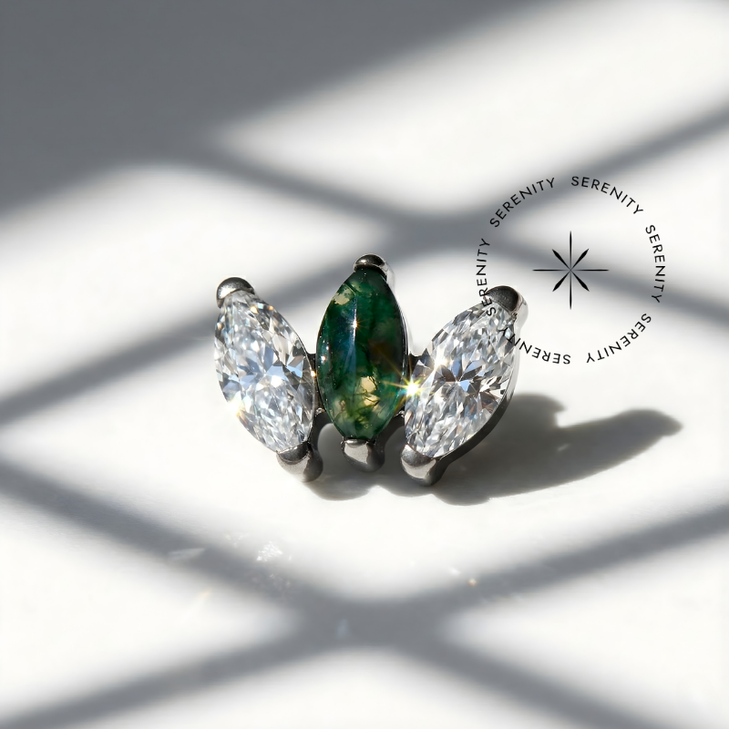 TN1207 Topo 3 Navetes CZ e Moss Ágata Titânio ASTM F-136