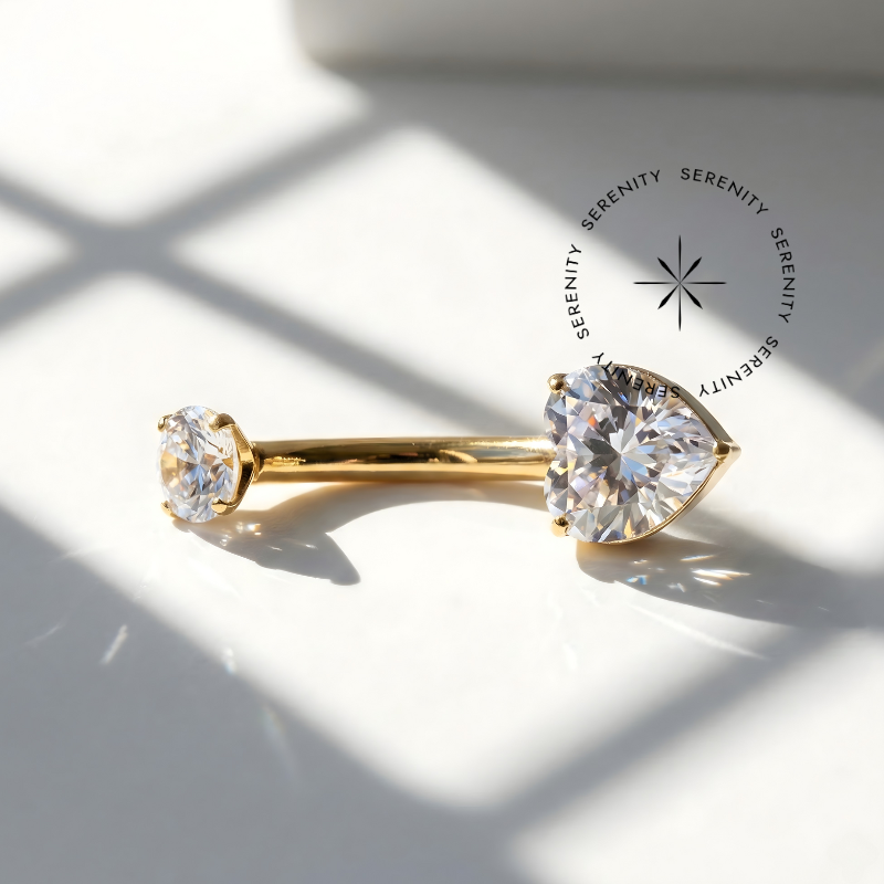 Descrição: Ideal para perfuração de umbigo, oferecendo um ajuste confortável e seguro. É uma joia cheia de estilo. O design curvado da haste permite um melhor encaixe na anatomia do corpo, minimizando o risco de irritação. Além disso, é fácil de limpar e manter, o que é essencial para garantir a saúde da perfuração.
