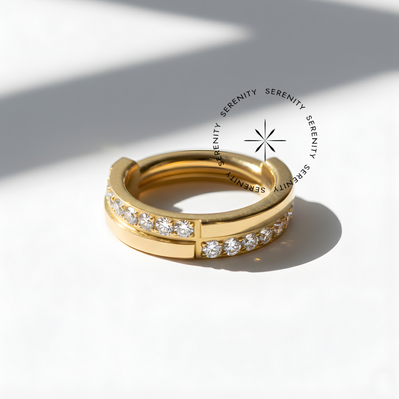 Descrição: Ideal para cartilagem, lóbulo, helix, entre outros piercings, oferecendo um ajuste confortável e seguro. É uma joia cheia de estilo.