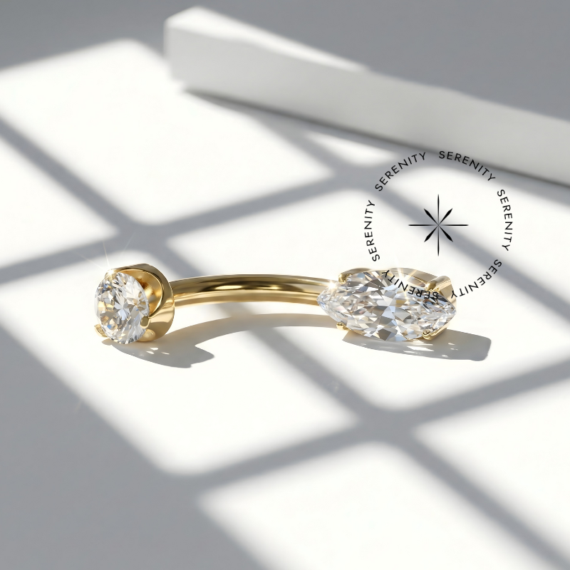 Descrição: Ideal para perfuração de umbigo, oferecendo um ajuste confortável e seguro. É uma joia cheia de estilo. O design curvado da haste permite um melhor encaixe na anatomia do corpo, minimizando o risco de irritação. Além disso, é fácil de limpar e manter, o que é essencial para garantir a saúde da perfuração.