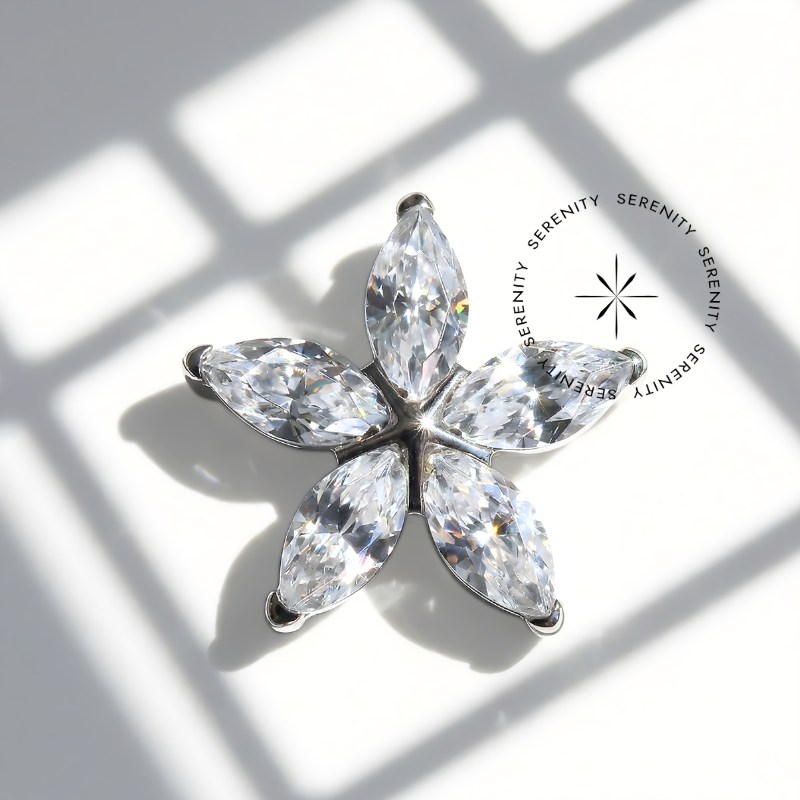 TN1278 Piercing Topo Flor Margarida Zircônias Titânio ASTM F-136