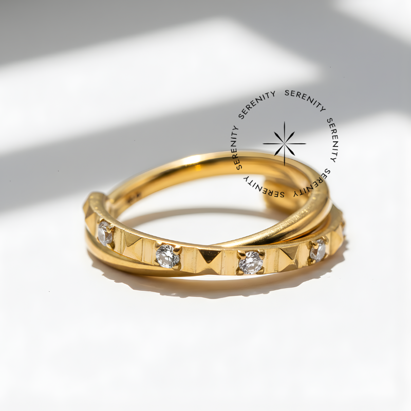 TN1322 Segmento Entrelaçado Geométrico CZ Titânio PVD Gold