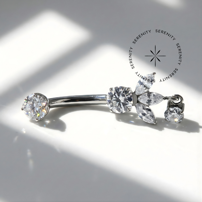 Descrição: Ideal para perfuração de umbigo, oferecendo um ajuste confortável e seguro. É uma joia cheia de estilo. O design curvado da haste permite um melhor encaixe na anatomia do corpo, minimizando o risco de irritação. Além disso, é fácil de limpar e manter, o que é essencial para garantir a saúde da perfuração.