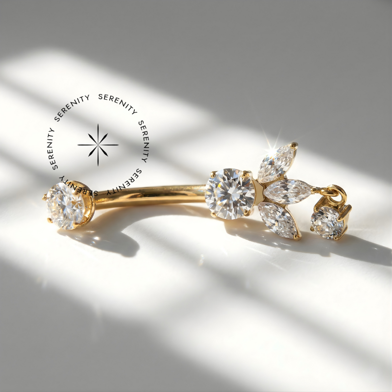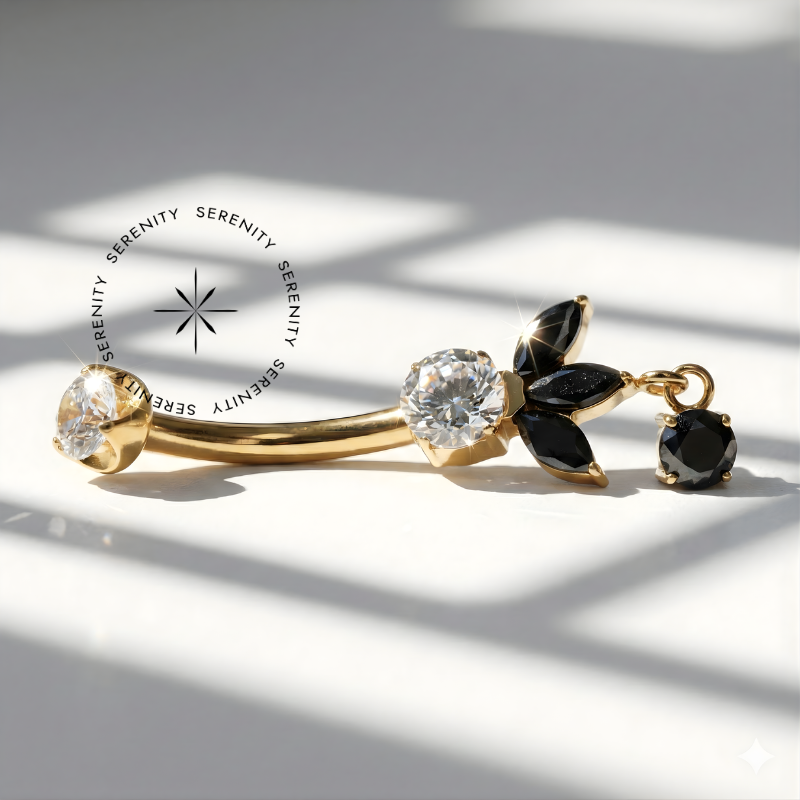 Descrição: Ideal para perfuração de umbigo, oferecendo um ajuste confortável e seguro. É uma joia cheia de estilo. O design curvado da haste permite um melhor encaixe na anatomia do corpo, minimizando o risco de irritação. Além disso, é fácil de limpar e manter, o que é essencial para garantir a saúde da perfuração.