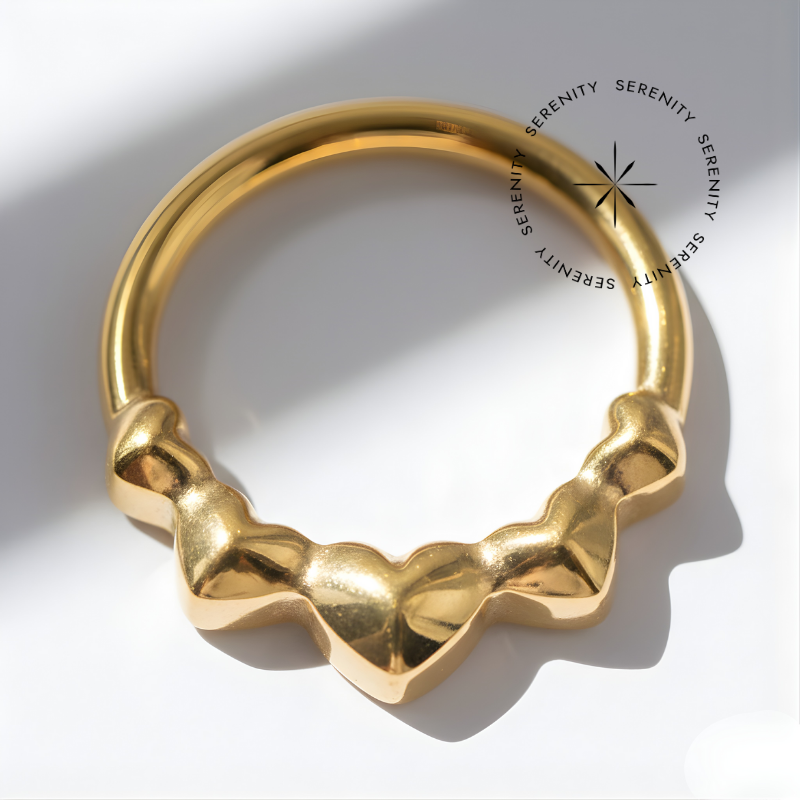 Descrição: Ideal para septo, daith, cartilagem, lóbulo, helix, entre outros piercings, oferecendo um ajuste confortável e seguro. É uma joia cheia de estilo.