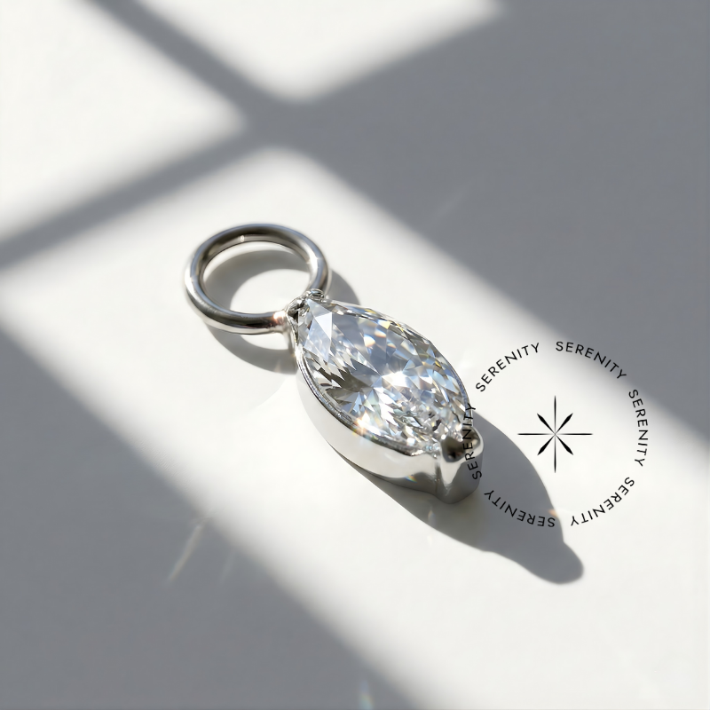 - Aplicação Ideal: Os pingentes são uma excelente adição para combinações de piercings, podendo ser utilizado em brincos, conectores de piercings no lóbulo ou tragus, e até mesmo em peças de body jewelry, como em piercings de septo. Sua forma única e estilizada permite criar looks ousados e personalizados.