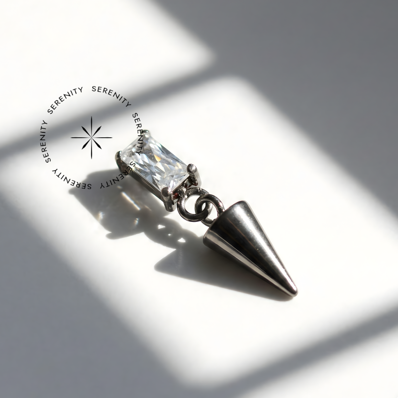 TN1570 Topo CZ Baguete Pingente Spike Titânio ASTM F-136