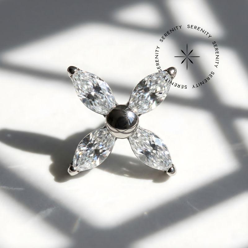 TN1576 Topo Flor 4 Pétalas Navetes Titânio ASTM F-136