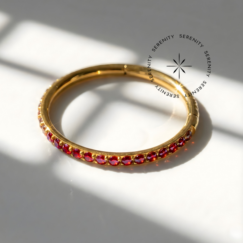 TN1617 Segmento Cravejado CZ Garnet Titânio PVD Gold