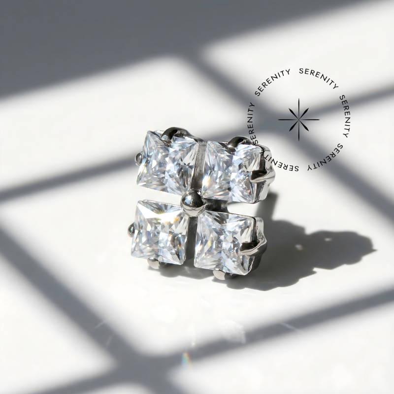 TN1662 Topo Trevo Quadrado CZ Titânio ASTM F-136