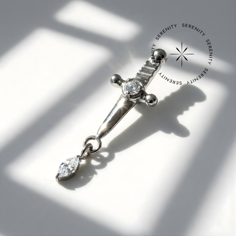 TN1678 Topo Espada Pingente Navete Titânio ASTM F-136