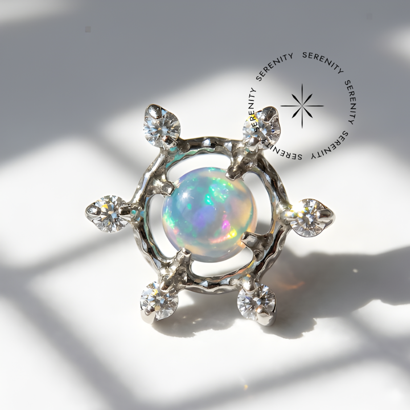 TN1750 Piercing Topo Sol Jelly Opala Verde Titânio ASTM F-136