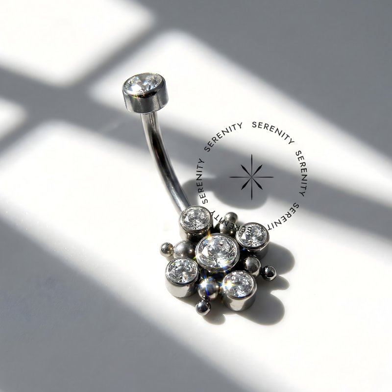 Descrição: Ideal para perfuração de umbigo, oferecendo um ajuste confortável e seguro. É uma joia cheia de estilo. O design curvado da haste permite um melhor encaixe na anatomia do corpo, minimizando o risco de irritação. Além disso, é fácil de limpar e manter, o que é essencial para garantir a saúde da perfuração.