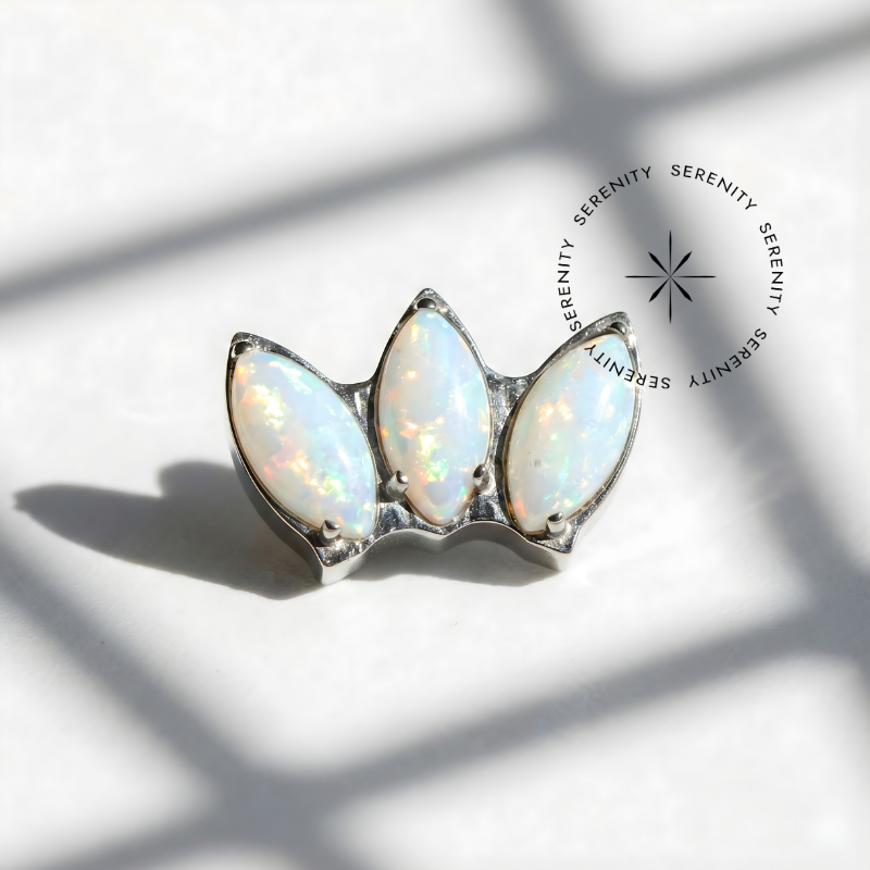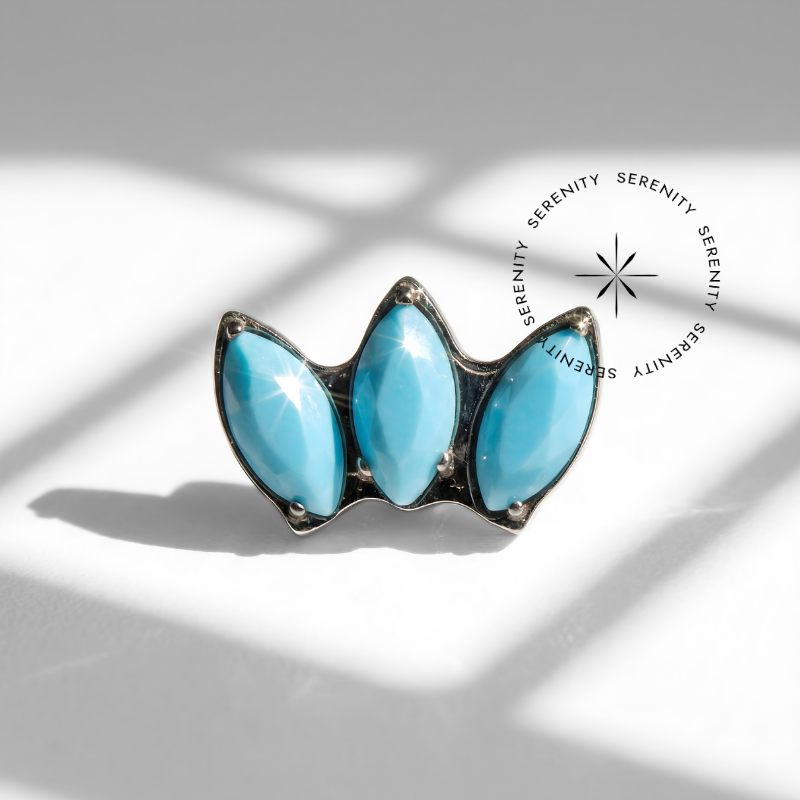 TN183 Topo 3 Navetes Pedras Opala e Turquesa Titânio ASTM F-136