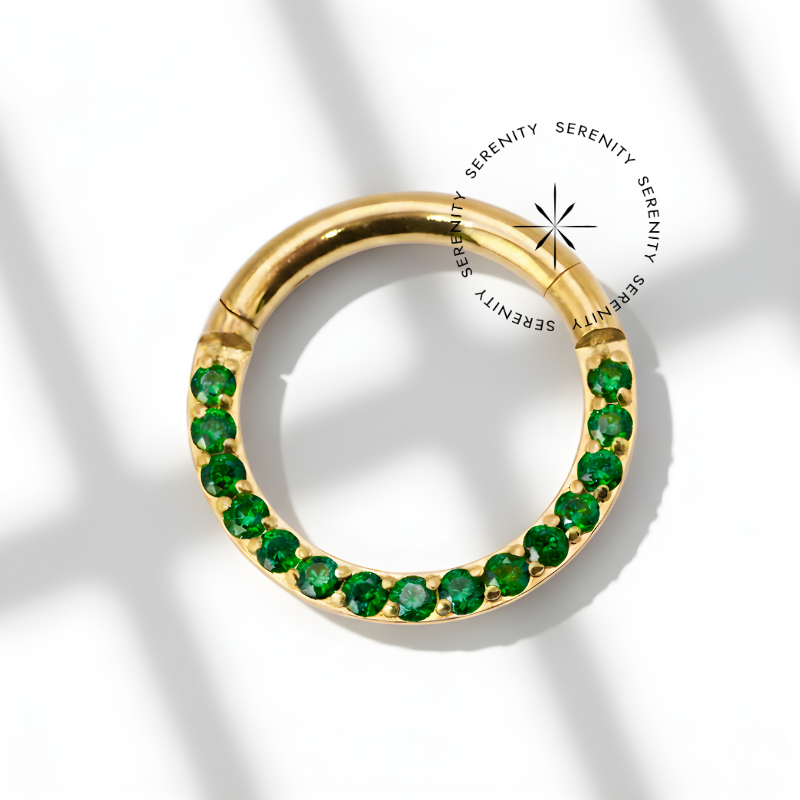 Descrição: Ideal para cartilagem, lóbulo, helix,septo, daith, entre outros piercings, oferecendo um ajuste confortável e seguro. É uma joia cheia de estilo.