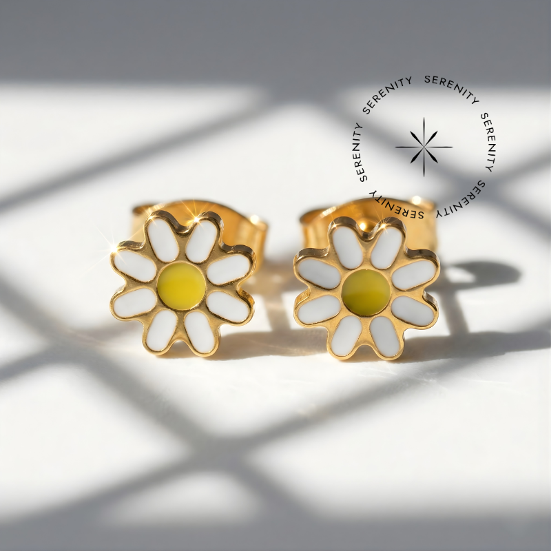 TN1869 Brinco Girassol Resinado Titânio PVD Gold