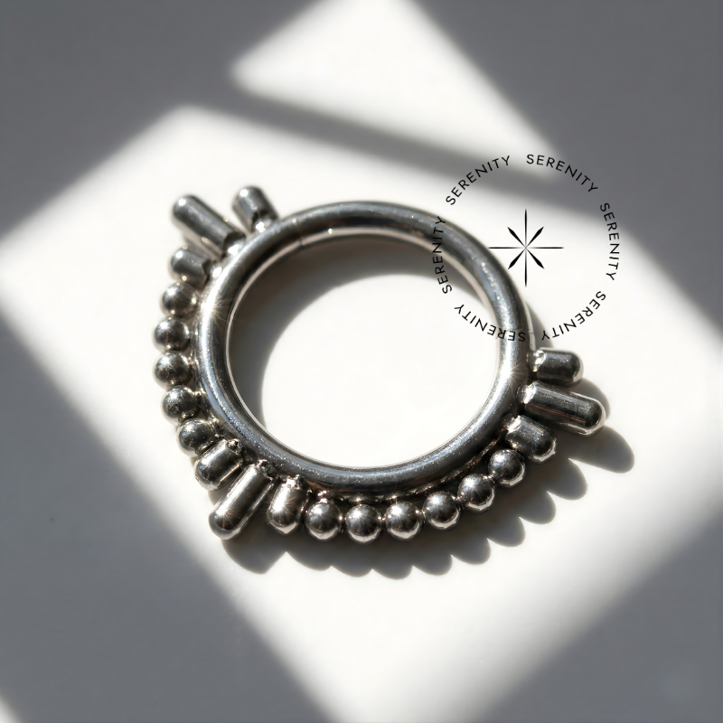 - Descrição: Ideal para cartilagem, daith, septo, entre outros piercings, oferecendo um ajuste confortável e seguro. É uma joia cheia de estilo.