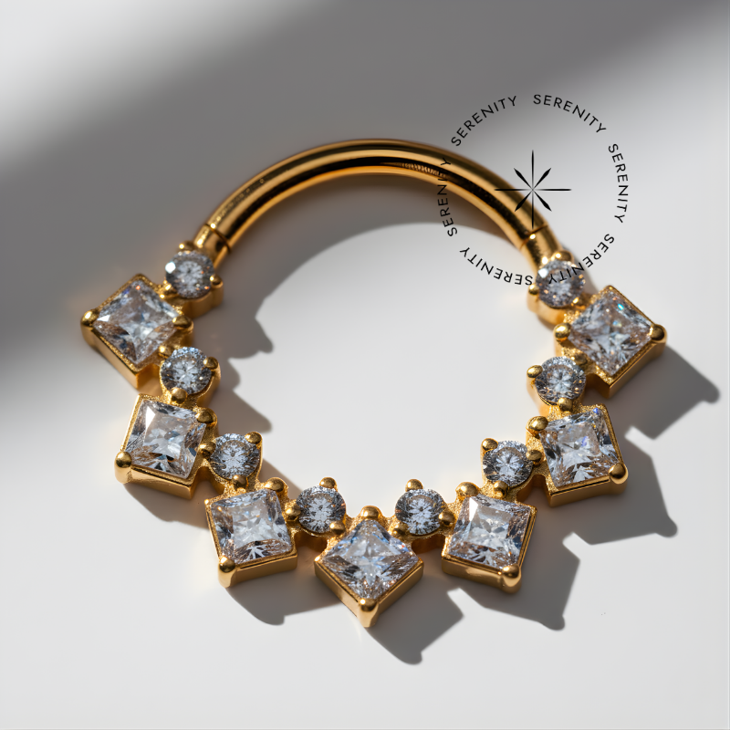 • Descrição: Ideal para cartilagem, daith, septo, entre outros piercings, oferecendo um ajuste confortável e seguro. É uma joia cheia de estilo.
