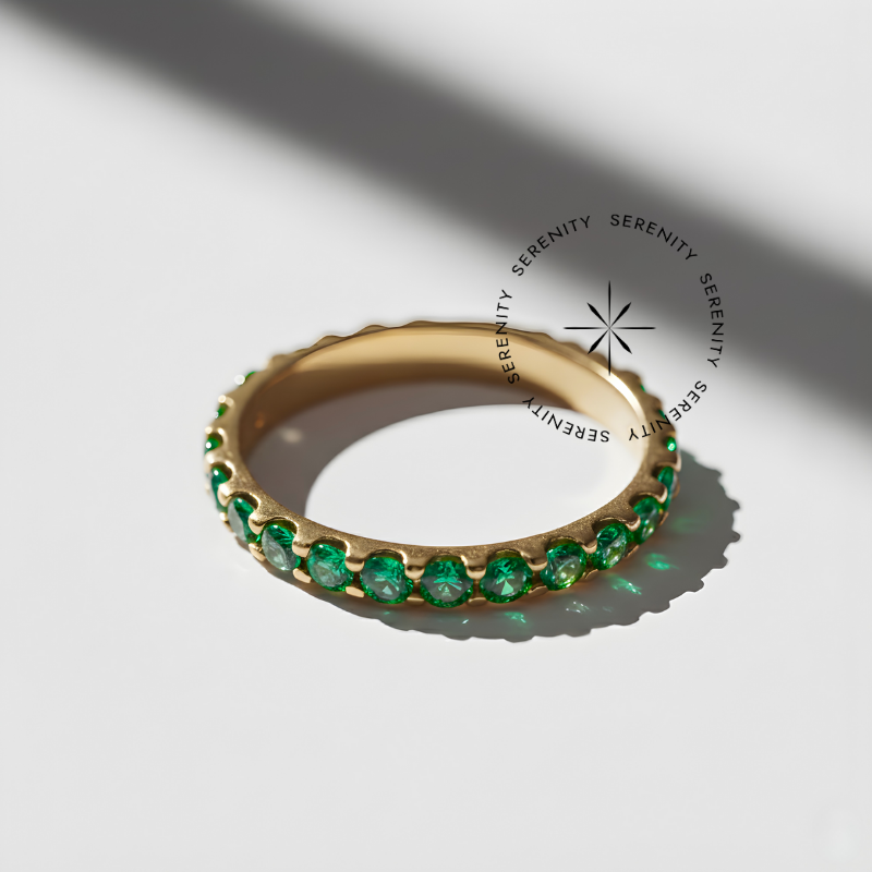 TN1907 Segmento Zircônia Verde Esmeralda Titânio PVD Gold