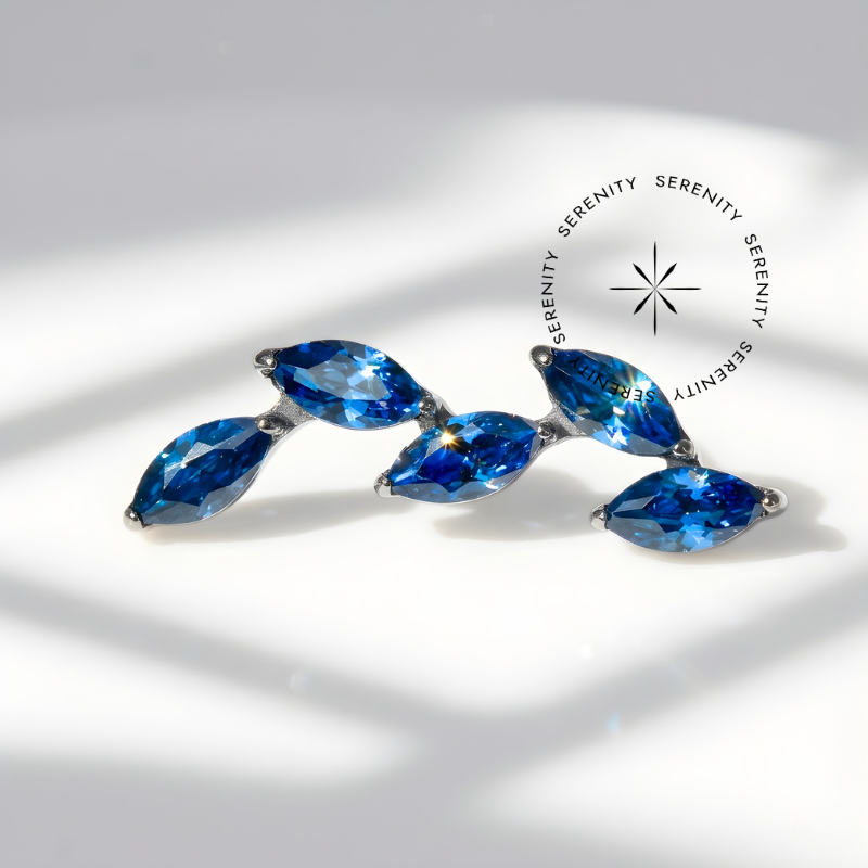 TN1978 Piercing Topo Cluster 5 Navetes Azul Titânio ASTM F-136