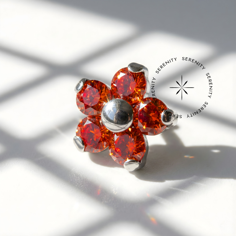Topo Flor CZ Miolo Chapa Titânio ASTM F136