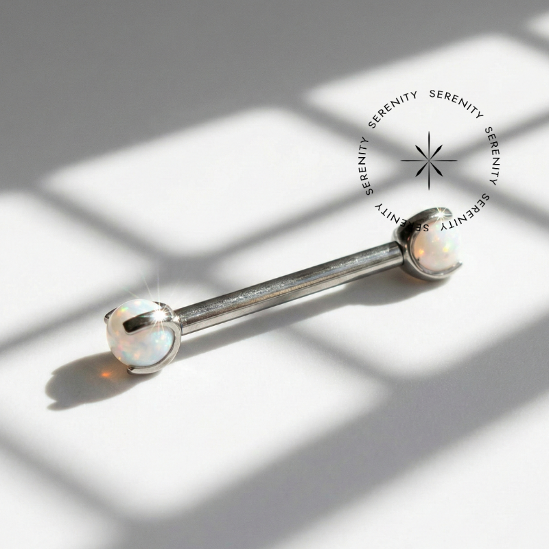 TN314 Piercing Mamilo Opala Branca Rosca Titânio ASTM F136