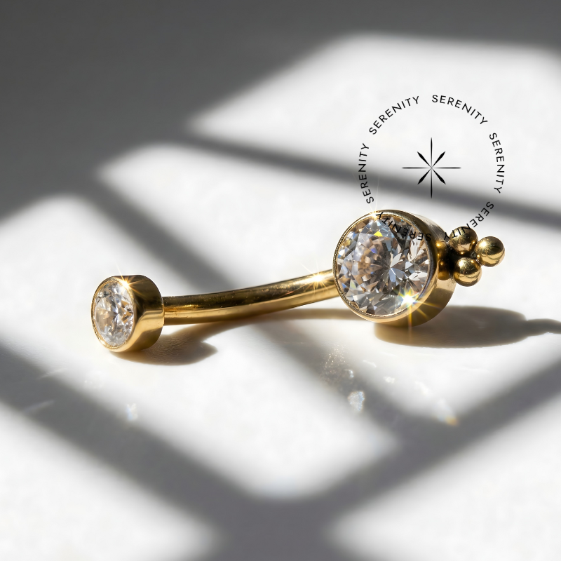 Descrição: Ideal para perfuração de umbigo, oferecendo um ajuste confortável e seguro. É uma joia cheia de estilo. O design curvado da haste permite um melhor encaixe na anatomia do corpo, minimizando o risco de irritação. Além disso, é fácil de limpar e manter, o que é essencial para garantir a saúde da perfuração.