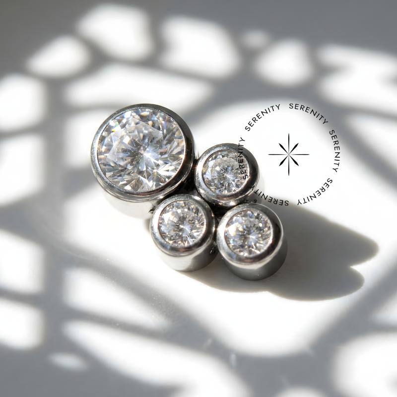 • Titânio ASTM F-136: Este tipo de titânio é amplamente utilizado em implantes médicos devido à sua biocompatibilidade, leveza e resistência à corrosão. Por não conter níquel, é seguro para a pele e ideal para pessoas sensíveis a alergias. Além disso, é a melhor opção para primeiras perfurações, pois promove uma cicatrização muito mais rápida em comparação com o aço 316L. O titânio também pode ser anodizado em várias cores, tornando-se uma excelente escolha para quem busca adicionar mais estilo às suas joias.
