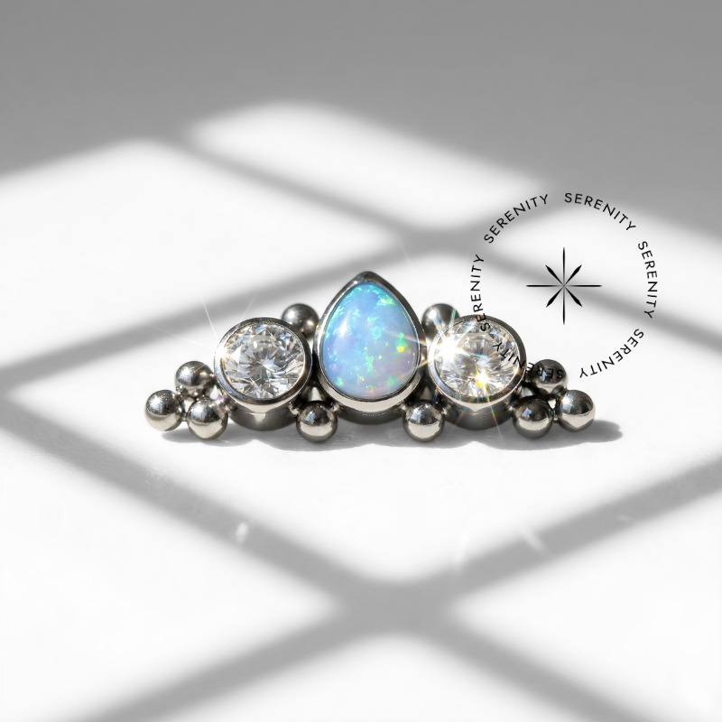 TN46 Piercing Topo Cluster Gota Opala Zircônias Titânio ASTM F136