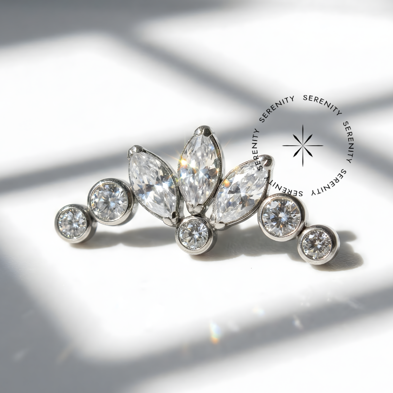 TN627 Piercing Topo Cluster Zircônias 3 Pétalas Titânio ASTM F136