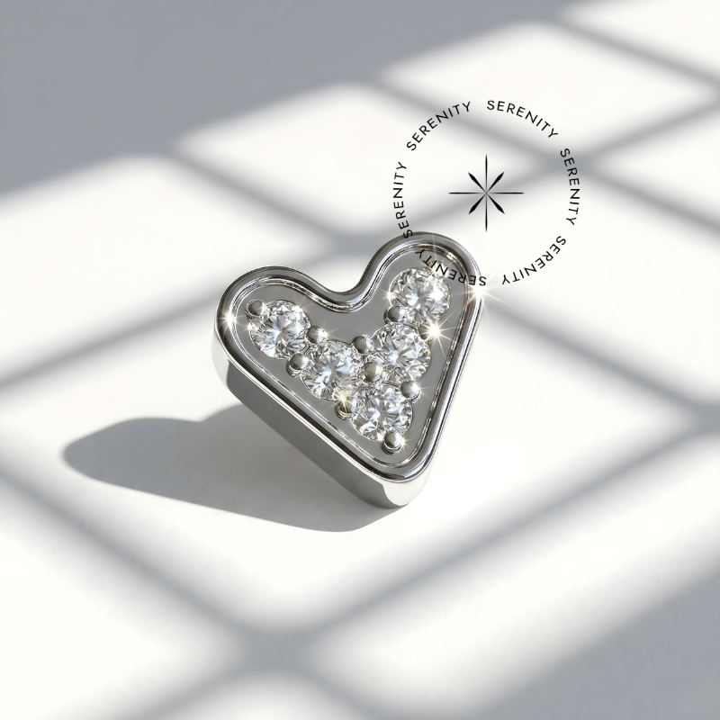 TN647 Topo Mini Coração Cravejado Titânio ASTM F136